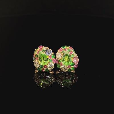 Secret Pond collection. Haute Joallerie earring couple with peridots, ruby, tsavorite and colourless natural diamonds SI1 1/6. Pink gold 18kt. A fairy tale item.