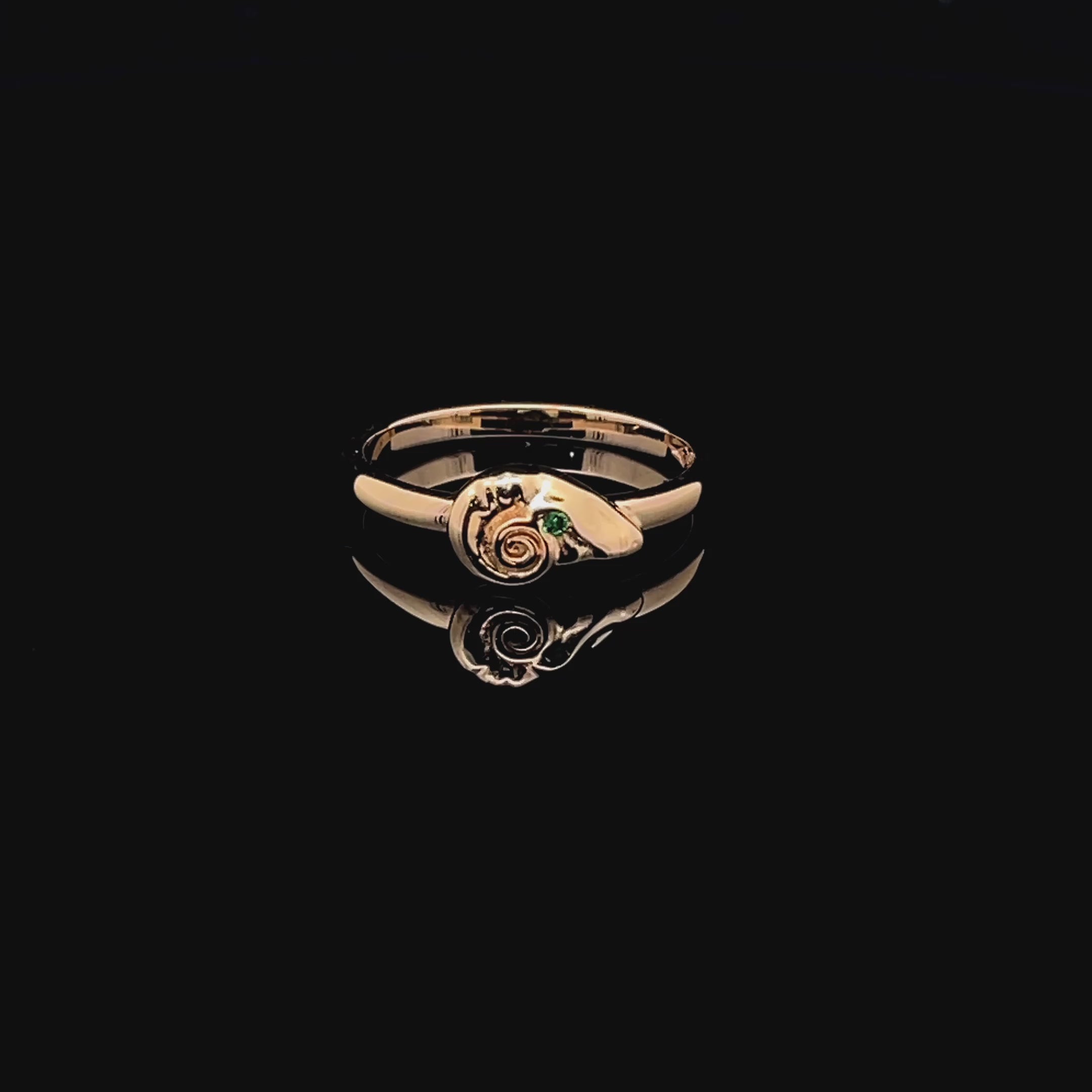 Our original brand's symbol. Crafted in Antwerp. 18 carat golden ring in yellow, pink or white. Here with natural Colombian emerald. Millenial access and bestseller.
