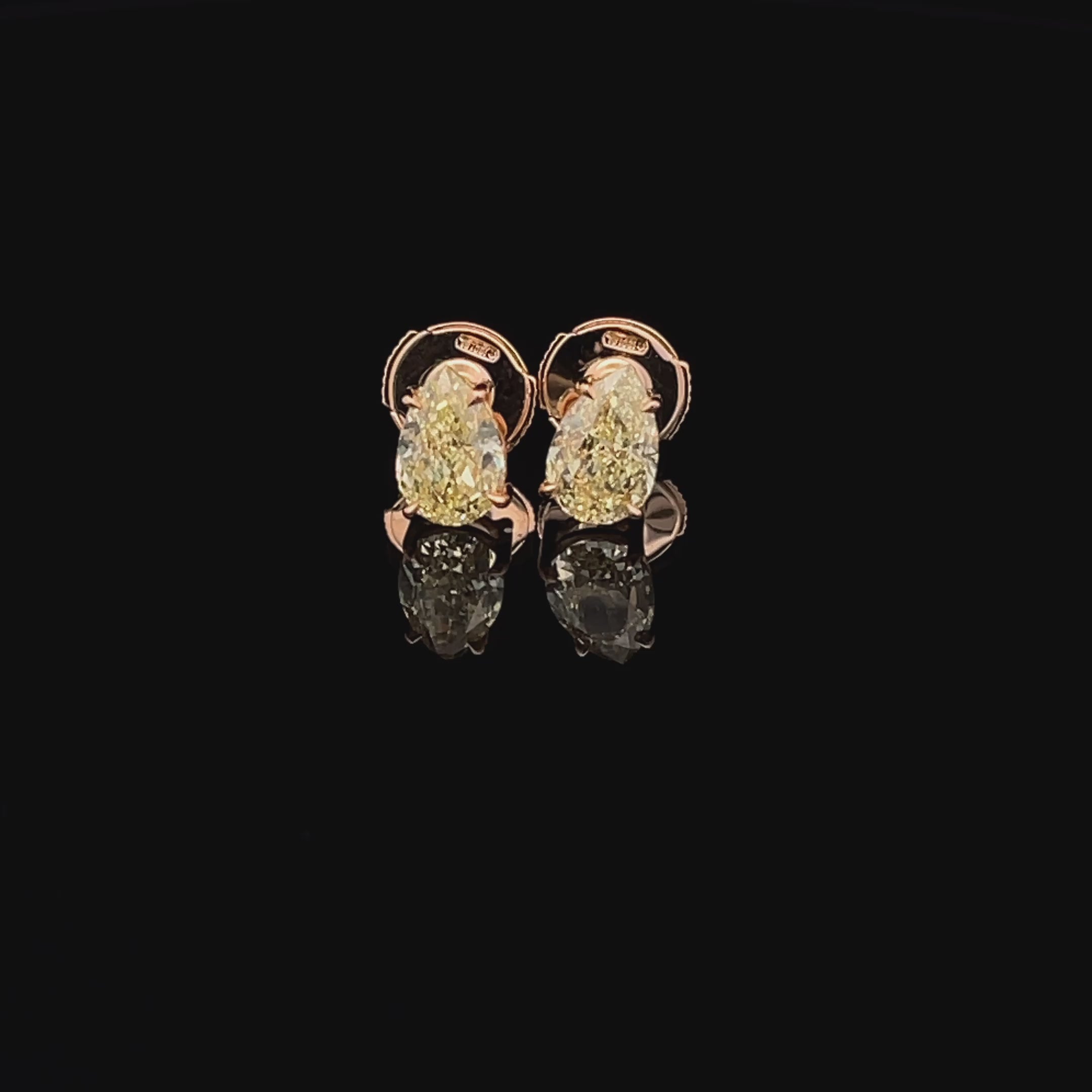 Natural light Fancy yellow pear shapesd diamonds. Perfect custom-cut couple of one carat each, vs ex/vg GIA. Simple handmade construction. Yellow gold 18 kt. Available in all sizes, colour intensities and shapes. Budgets accordingly. A classic.